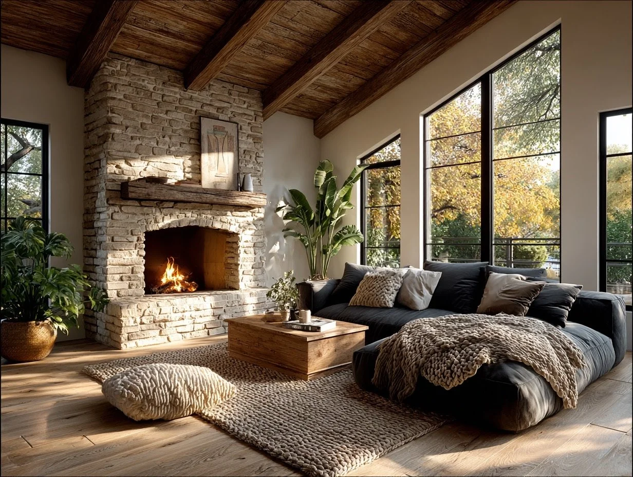 Earthen Sanctuary embraces natural materials, warm tonal palettes, and hand crafted elements to create spaces that feel safe and deeply human.
